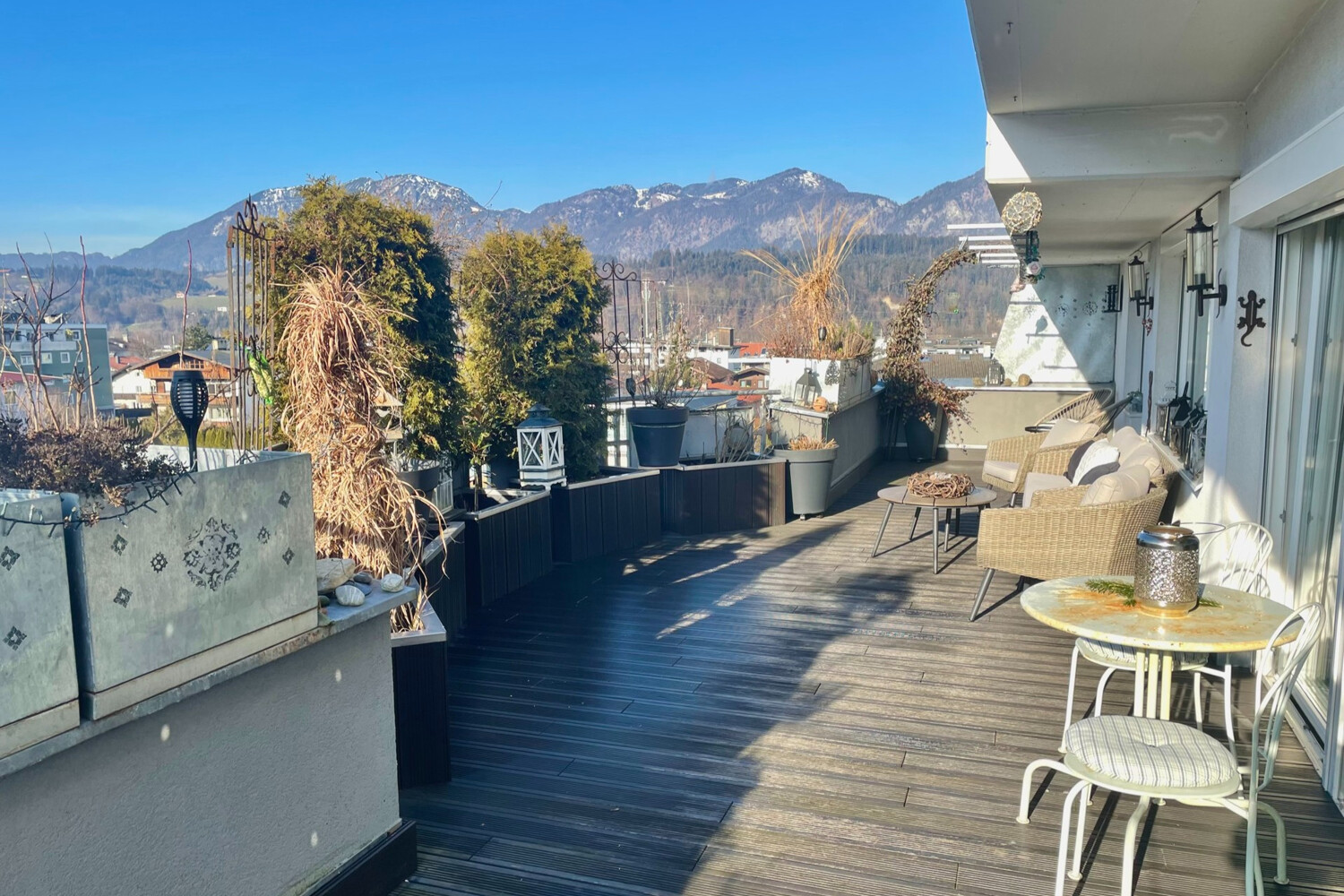 Ein besonderes Highlight ist die großzügige Westterrasse, die zum Entspannen einlädt und einen schönen Blick auf die Umgebung bietet.